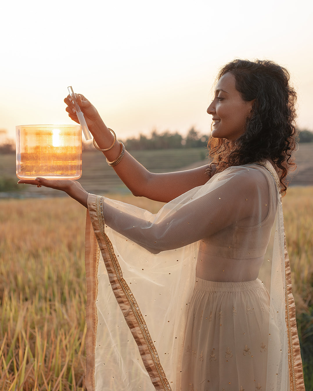 Our premium bowl production process is based in China where 95% of the world's crystal singing bowls are made. We are a small but dedicated team based across multiple locations in Asia including Bali. Our crystal singing bowls are made of the highest quality quartz, with stunning designs, rich sustained tones and real heart and artistry behind each custom-made bowl. I have spent years looking for the best bowls on the market and refining the stunning designs you see on this site. I've also personally used these bowls in my own sound healing practice for personal and professional sessions in the last 3 years, and shipped 100s of bowls worldwide to our very happy sound healers and lovers of sound all over the world.