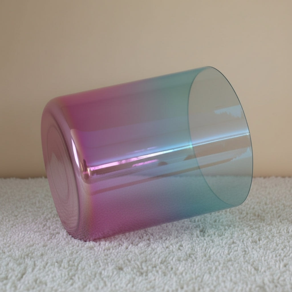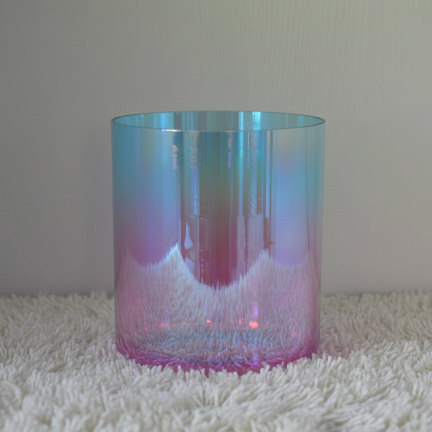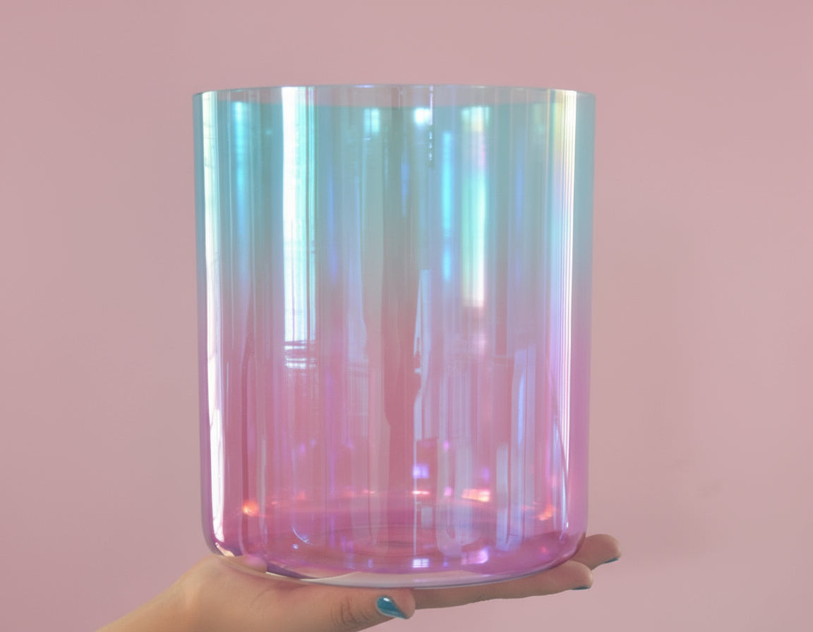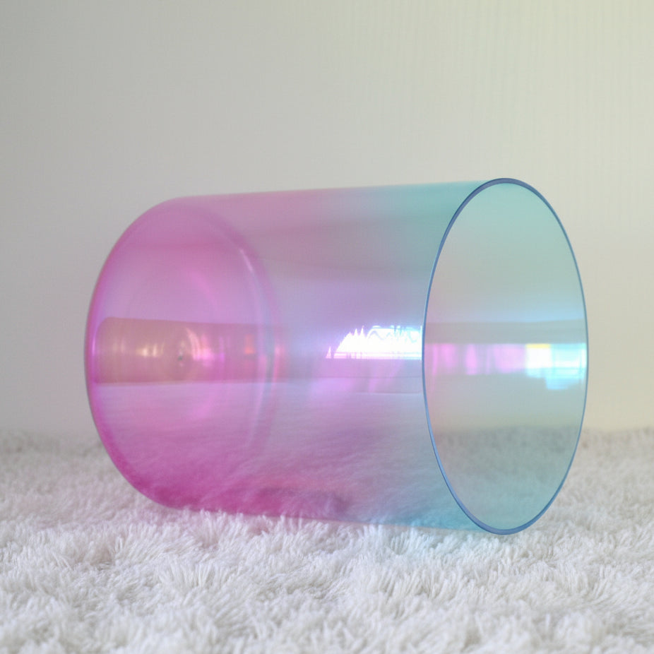 Celestial Dawn is a crystal singing bowl capturing the gentle transition of first light with a transparent blend of soft pink rising into serene blue. This colorway reflects the union of heart and throat chakras, inviting love-filled expression, emotional clarity, and a renewed sense of hope. Ideal for meditation, sound healing, or any practice where you want to open your heart and speak your truth with grace.