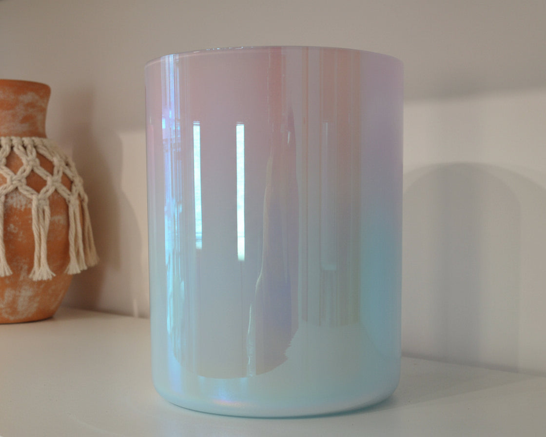 Cosmic Ocean is a crystal singing bowl inspired by the meeting of sky and sea. With its soft gradient of pastel blue fading into gentle pink, it evokes the calm of ocean tides and the tender glow of sunrise. This bowl supports emotional balance, intuitive flow, and heart-centered communication, like a wave carrying you back to your natural rhythm. It’s an ideal companion for sound journeys, meditation, and practices that nurture both inner peace and creative expression.