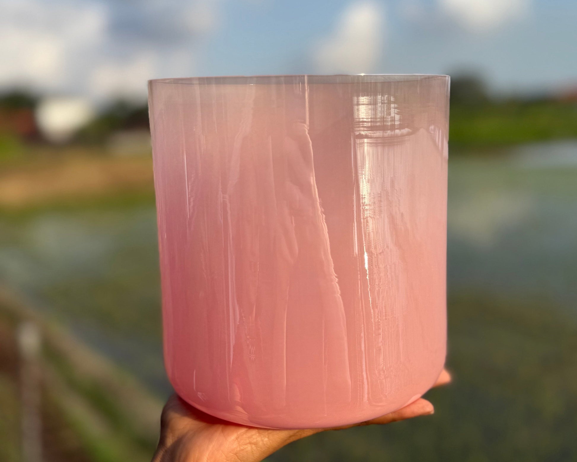 Radiant Heart is a crystal singing bowl that embodies tenderness, compassion, and the healing power of love. With its soft pink hue, it calls you to rest in the frequency of the heart, a place where vulnerability becomes strength and connection becomes medicine. This bowl supports practices of self-love, emotional healing, and deepening relationships, making it a beautiful companion for both personal meditation and sound healing journeys.