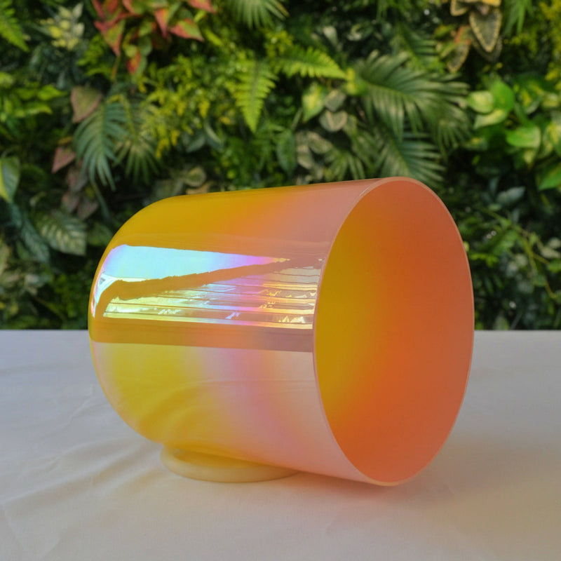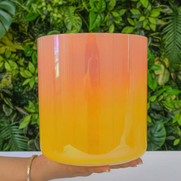Radiant Soul is a crystal singing bowl that bridges the energy of joy and love. Its golden-yellow base flows upward into a soft pink glow, symbolizing the journey from personal power to the heart’s highest frequency. This bowl reminds you that true radiance is born when confidence meets compassion, and strength is guided by love. It is a beautiful ally for sound healing, meditation, and practices of self-worth, connection, and heart-centered living.