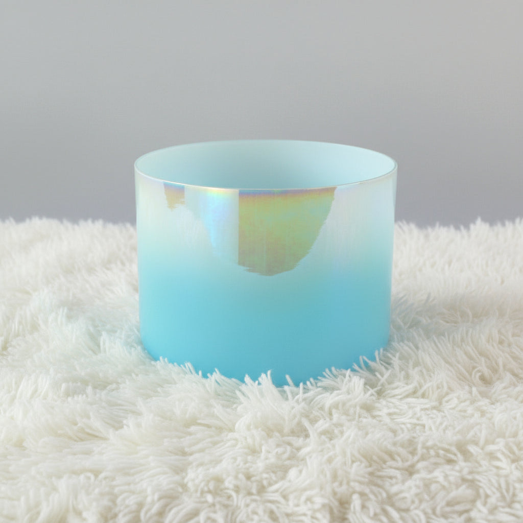 Aquamarine Pearl is a crystal singing bowl in soft ocean-blue hues with a pearly shimmer, echoing the calm clarity of gentle waves. It carries the vibration of open communication, self-expression, and heartfelt truth which is a frequency that helps you speak, sing, and share from a place of ease and authenticity. Like clear waters flowing freely, this bowl encourages you to release tension in the voice, open your channel of expression, and let your authentic sound flow. Perfect for meditation, vocal practices, and sound healing sessions focused on expression and clarity.