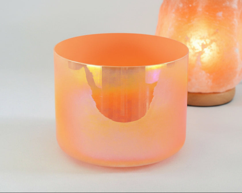 Cosmic Flare is a crystal singing bowl alive with the frequency of vitality, courage, and radiant expansion. Its fiery orange glow mirrors the sun’s own brilliance, igniting creativity, passion, and the life force within. Playing this bowl feels like summoning a spark of divine fire reminding you of your innate power to shine, to express, and to move forward with boldness. It’s an ally for energizing practices, activating willpower, and infusing your space with warmth and inspiration.